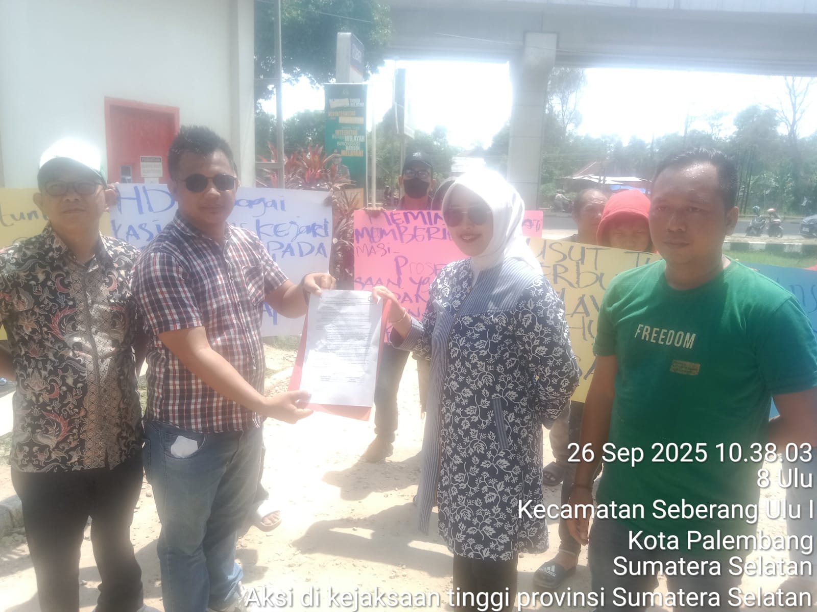 Hal tersebut di sampaikan oleh Indrus Tanjung Koordinator aksi, saat berorasi di Kantor Kejati Sumsel, Palembang, Jum’at (26/09/25).