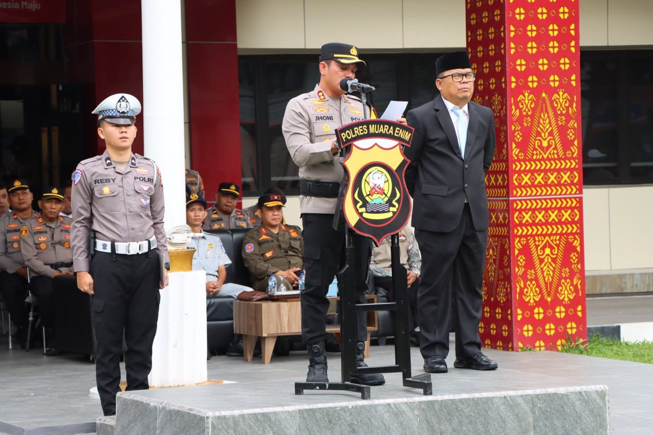 Apel Gelar Pasukan tersebut dipimpin langsung oleh Kapolres Muara Enim AKBP Jhoni Eka Putra, SH, SIK, MSI selaku pimpinan apel. Kegiatan ini turut dihadiri unsur Forum Koordinasi Pimpinan Daerah (Forkopimda) Kabupaten Muara Enim, organisasi perangkat daerah terkait, tokoh agama, serta para Pejabat Utama (PJU) Polres Muara Enim.