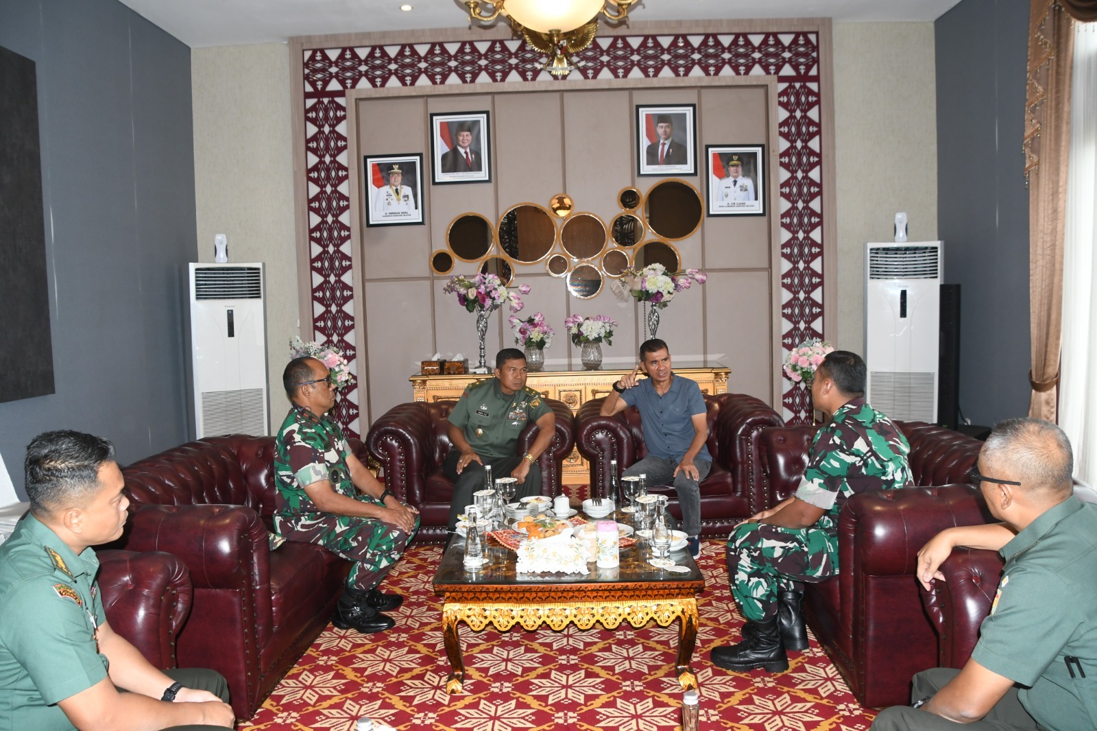 Wartainsumsel.com | Palembang – Suasana hangat terlihat pada saat Danrem 044/Gapo Brigjen TNI Adri Koesdyanto menyambut kedatangan Koorsahli Kasad Letjen TNI Muhammad Zamroni yang tiba VIP Room Bandara Internasional SMB II Palembang pagi ini dalam rangka Wasev TMMD ke-126 Kodim 0401/Muba, Rabu (22/10/2025).