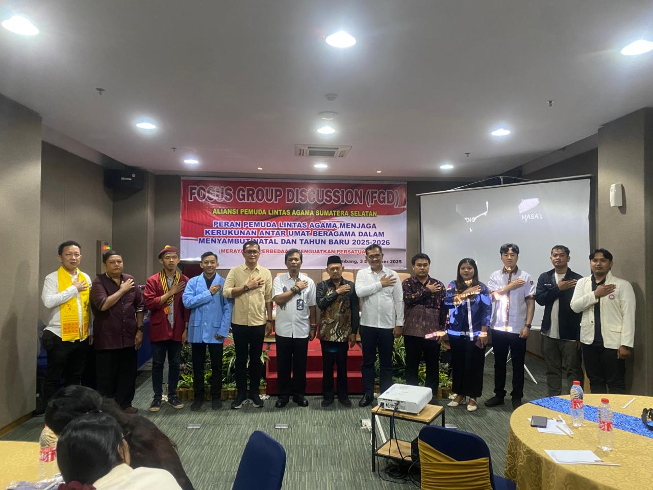 Wartainsumsel.com | Palembang, –  – Dalam Meningkatkan Kerukunan dan ketentraman umat beragama di provinsi Sumsel, Direktorat Intelkam Polda Sumsel Gelar Focus Group Discussion (FGD) Aliansi Pemuda lintas agama Sumatera Selatan, baik itu agama Islam Kristen Katolik Buddha Protestan konghucu, Acara Berlangsung di Hotel Batiqa Palembang. Rabu (3/12/2025)