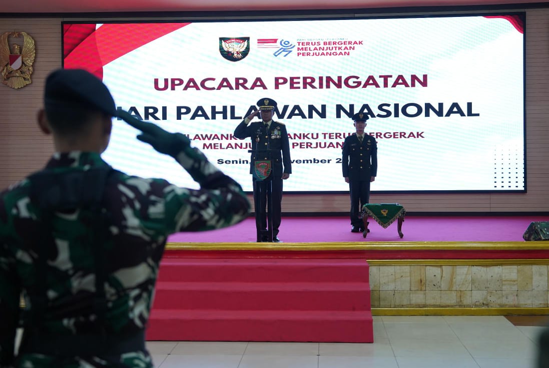 Wartainsumsel.com | Palembang, – Komando Daerah Militer II/Sriwijaya menggelar upacara khidmat memperingati Hari Pahlawan tahun 2025 di Gedung Sudirman, Makodam II/Sriwijaya, Senin (10/11/2025). Kasdam II/Sriwijaya, Brigjen TNI Iwan Ma’ruf Zainudin, S.E., M.M., bertindak selaku Inspektur Upacara pada kegiatan yang mengusung tema “Pahlawan Teladanku, Terus Bergerak, Melanjutkan Perjuangan” ini. Peringatan ini kembali mengenang peristiwa heroik Pertempuran 10 November 1945 di Surabaya, yang menjadi penanda sejarah dekolonisasi dunia.