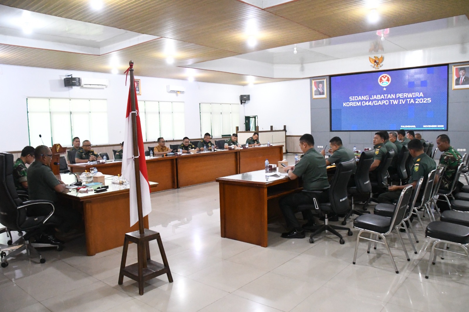 Wartainsumsel.com | Palembang – Komando Resor Militer 044/Garuda Dempo melaksanakan sidang jabatan bagi Perwira, Bintara, dan Tamtama sebagai bagian dari upaya pembinaan karier serta optimalisasi manajemen personel di lingkungan Korem 044/Gapo, Rabu (26/11/2025).