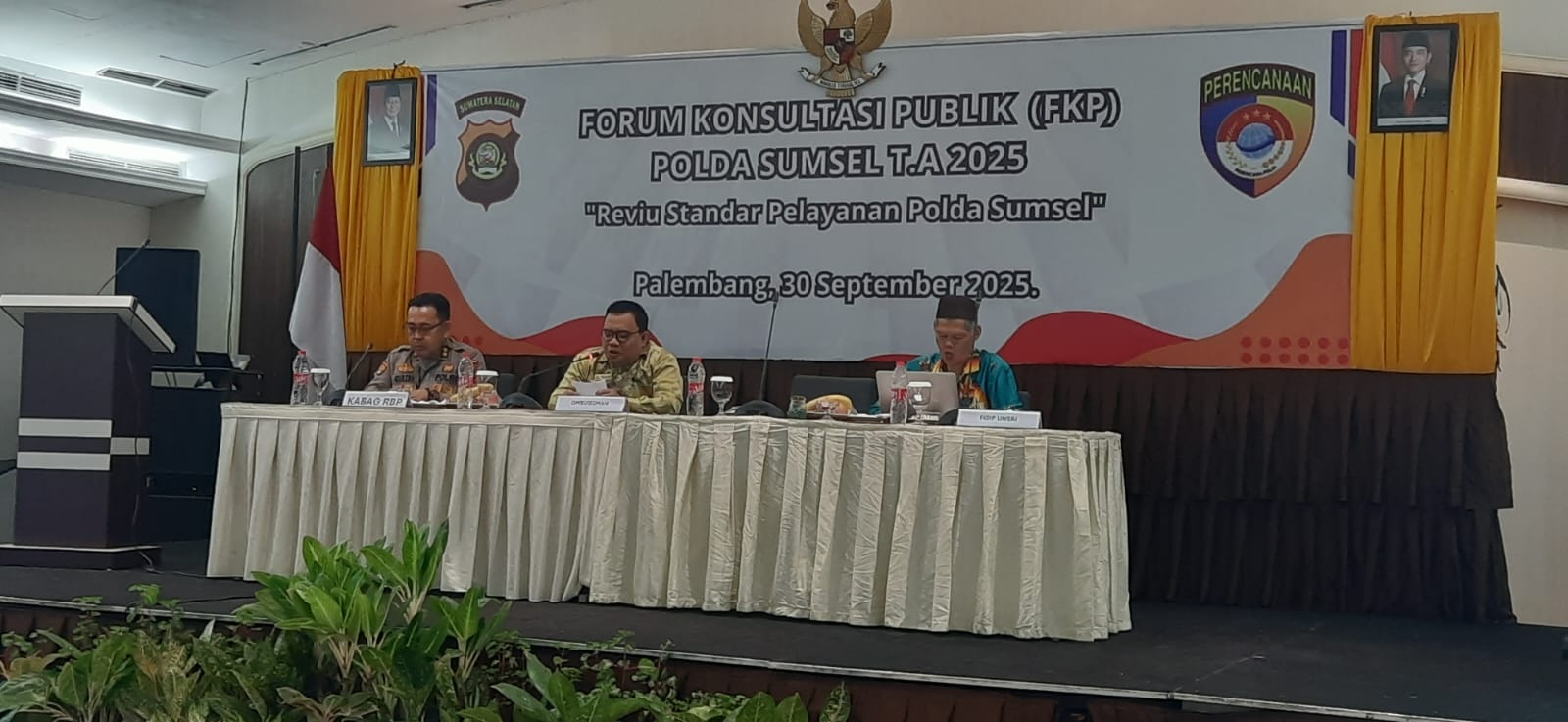 Salah satu langkah strategis yang dilakukan Biro Perencanaan (Rorena) Polda Sumsel dengan menggelar Forum Konsultasi Publik (FKP) Tahun 2025 dengan tema “Reviu Standar Pelayanan Polda Sumsel”