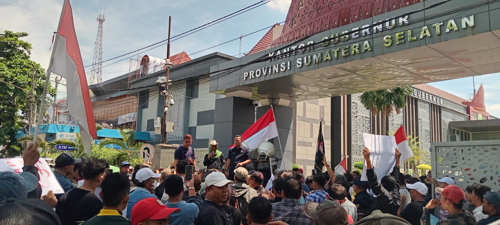 Wartainsumsel.com | Palembang – Ratusan Massa Aliansi Aktivis Mahasiswa Serta Pedagang Pasar Induk Jakabaring Palembang Bersatu Geruduk Kantor Gubernur Sumatera Selatan demi memperjuangkan Kepentingan serta menyampaikan Aspirasi-Aspirasi dari para pedagang pasar induk jakabaring Palembang, terkait dengan adanya beberapa persoalan-persoalan yang diinventarisir serta ditemukan di lapangan oleh para pedagang pasar induk jakabaring Palembang, Kamis 30-10-2025