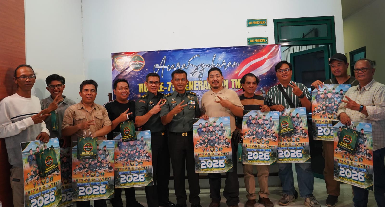 Wartainsumsel.com | Palembang – Penerangan Kodam II/Sriwijaya menggelar acara syukuran dalam rangka memperingati Hari Ulang Tahun (HUT) Ke-75 Penerangan TNI Angkatan Darat Tahun 2026. Kegiatan yang digelar secara sederhana dan berlangsung khidmat ini dilaksanakan di Aula Serbaguna Pendam II/Sriwijaya, Palembang, Rabu (14/01/2026), dengan mengusung tema, *”Penerangan TNI AD, Bekerja dengan Hati, Profesional, dan Terpercaya”*._